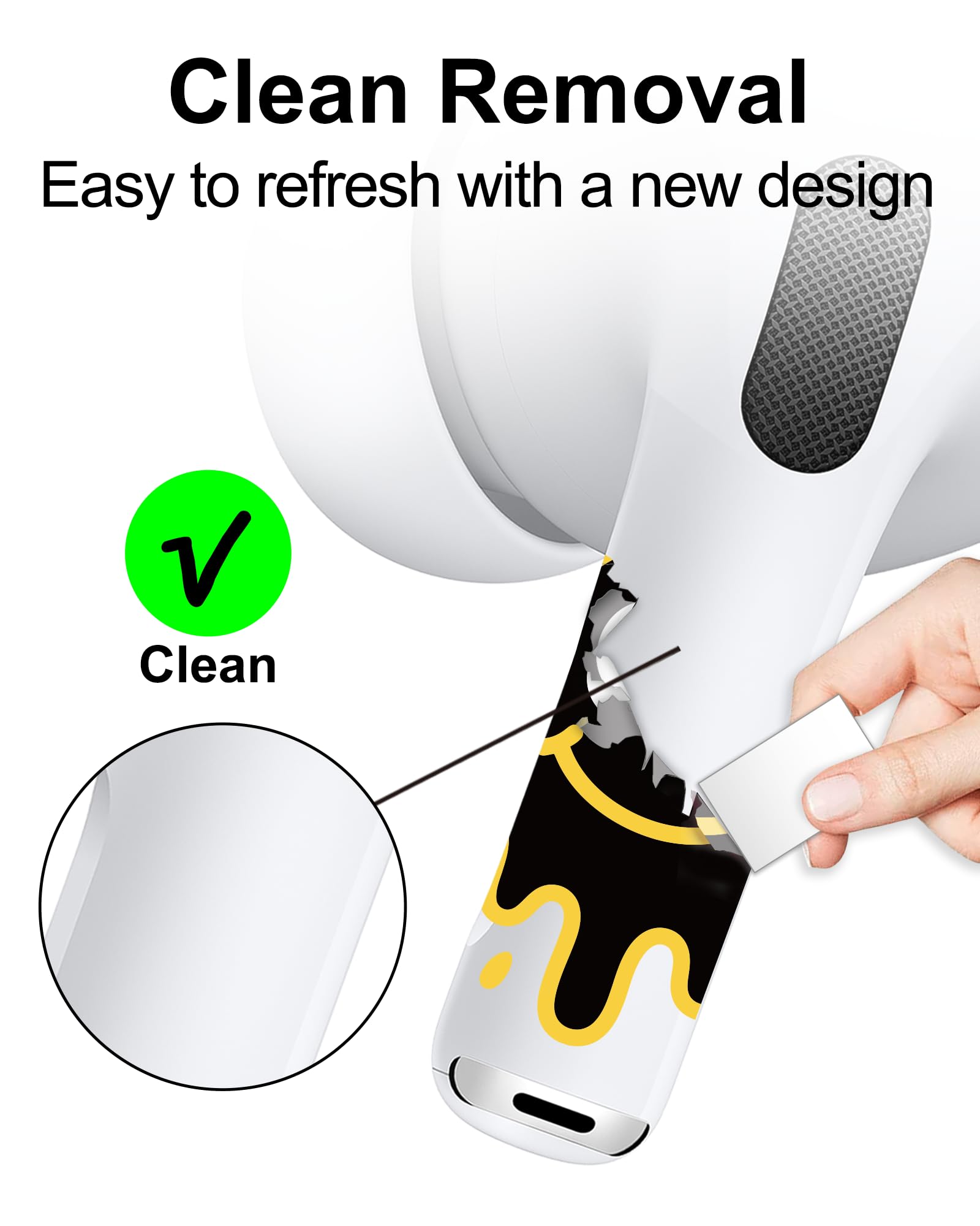 - Skin sticker for AirPods earbuds, not a bulky case. Add style without changing the fit or feel—designed to keep charging and sensors working normally for everyday use.