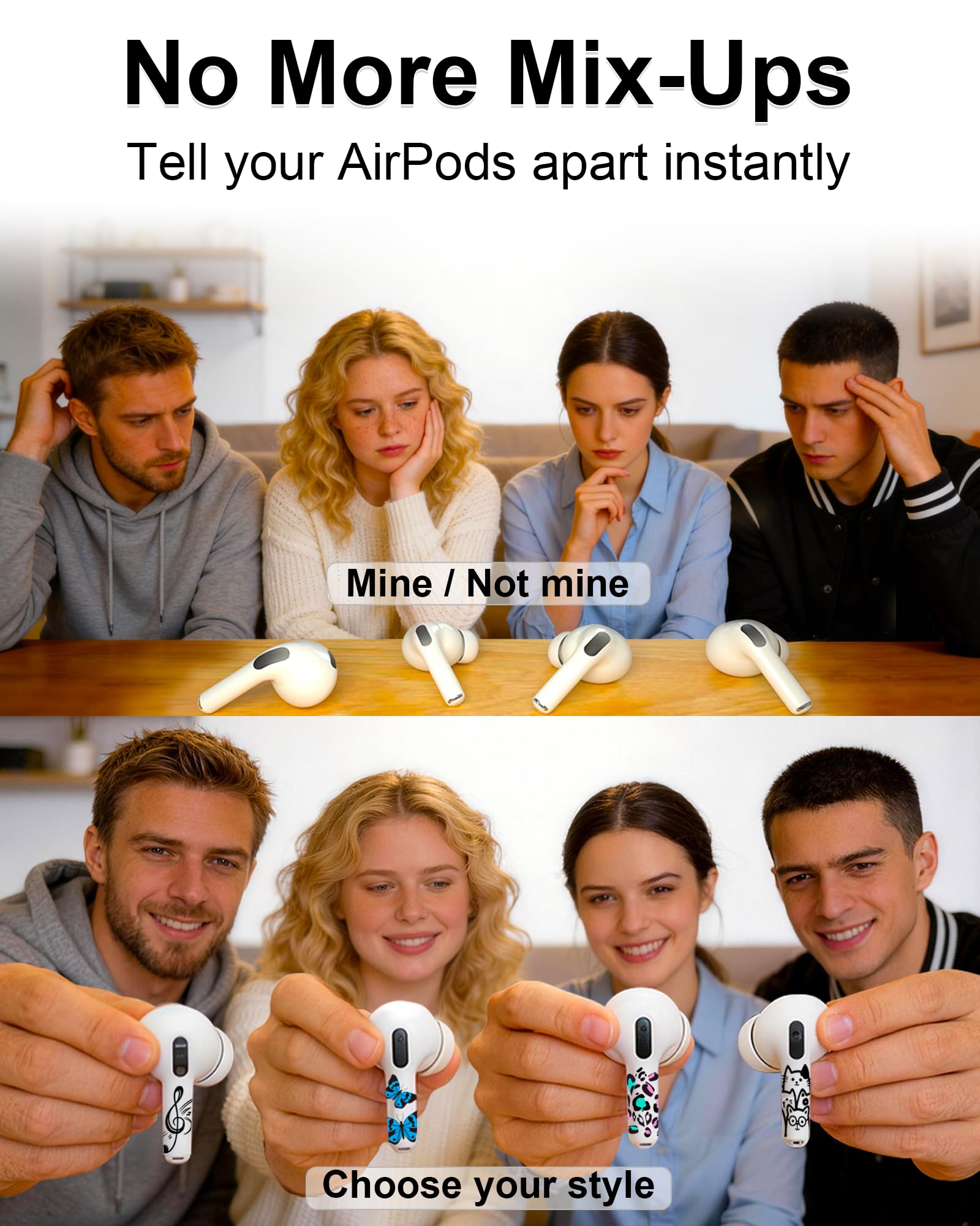 - No more mix-ups. Make your AirPods instantly recognizable at work, school, gym, or travel—stand out in a crowd and avoid grabbing the wrong pair.