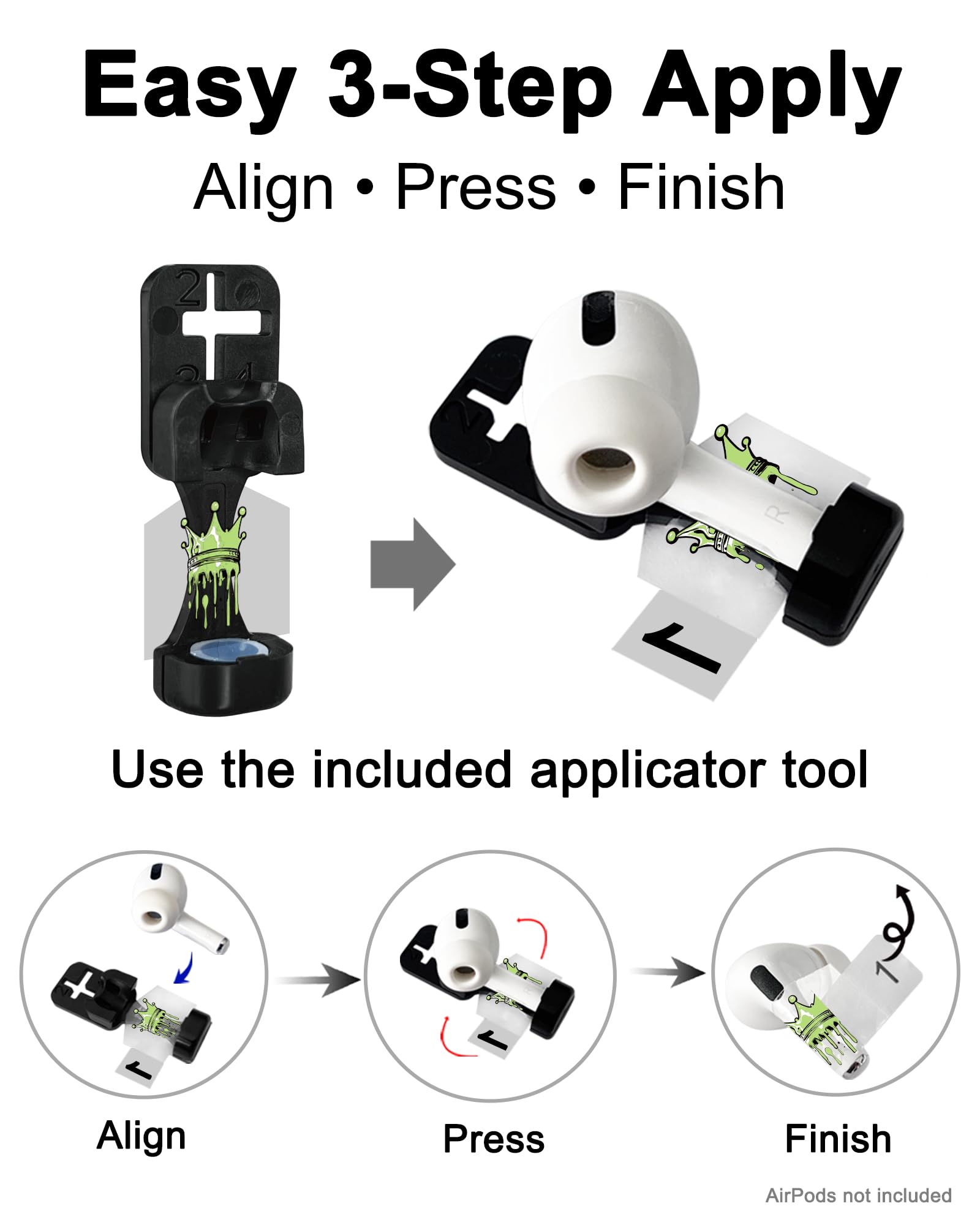 - Glow-in-the-dark skin sticker for AirPods earbuds. Looks great in daylight and helps you spot your AirPods faster at night—ideal for bedside, travel, and low-light rooms.