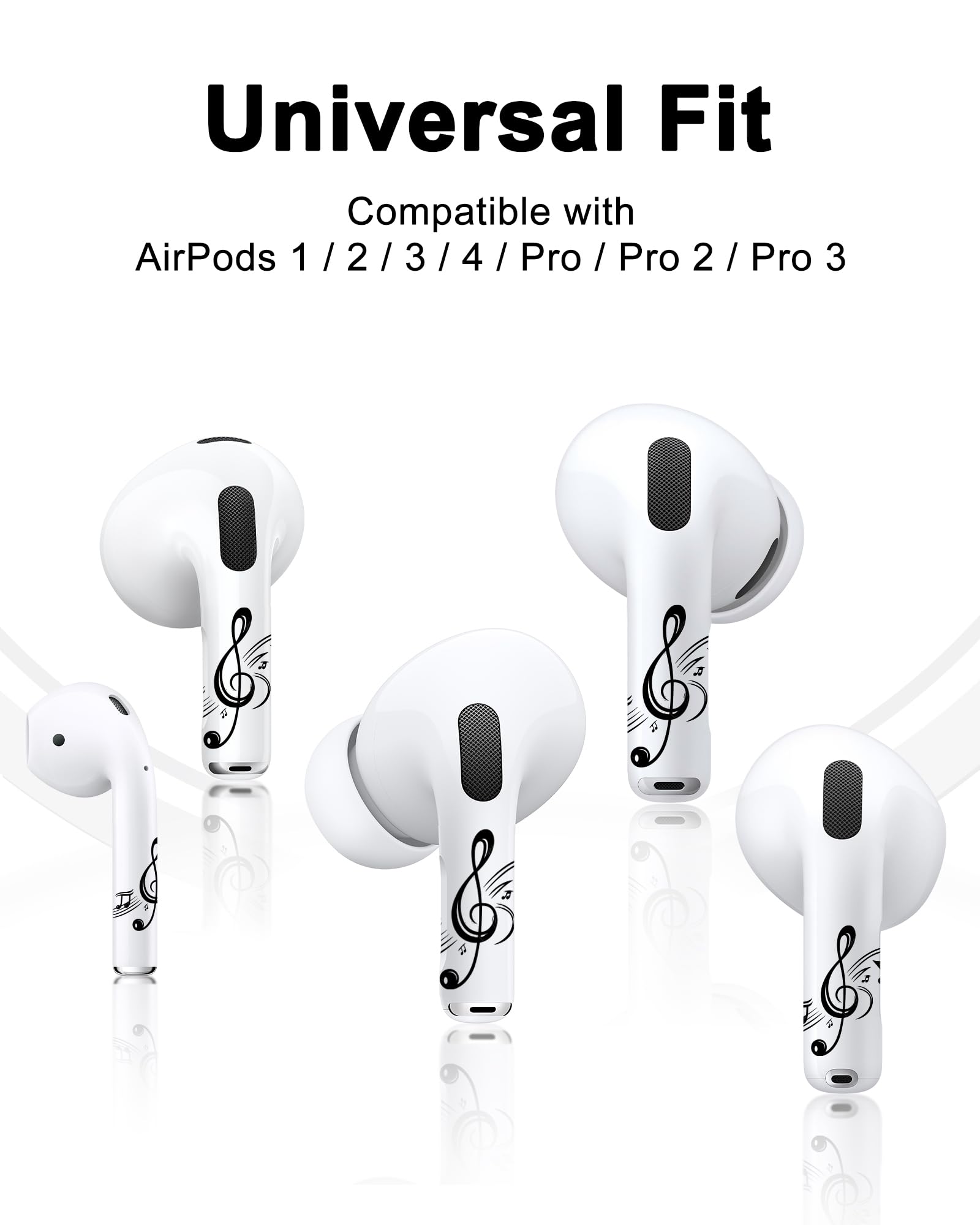 - Universal Compatibility: Our AirPods stickers are designed to fit all AirPods models, including 1st, 2nd, 3rd, 4th Gen, and AirPods Pro 3/Pro 2/Pro. Enjoy the perfect fit and seamless application across all your devices.