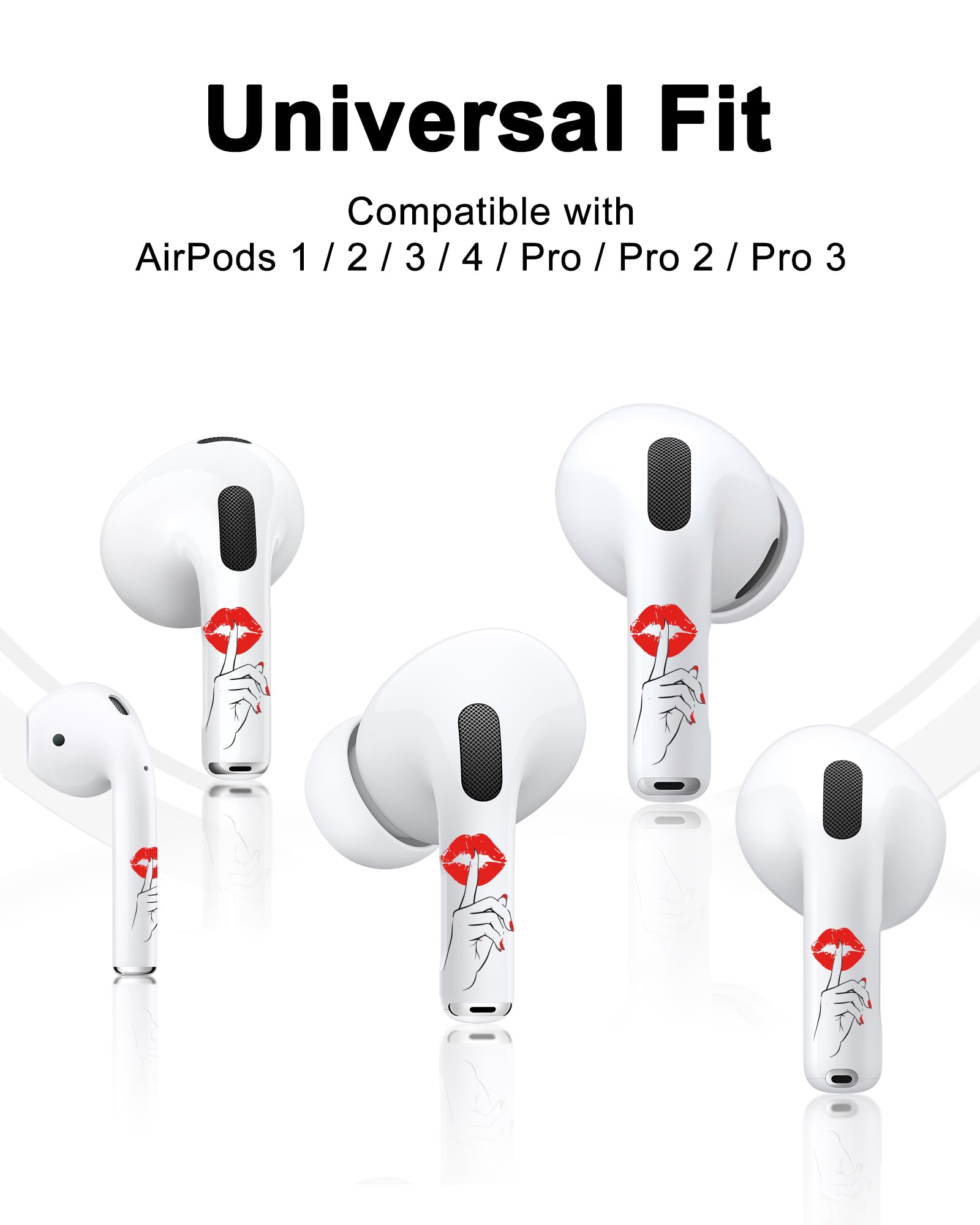 RockMax for AirPods 4 Skin,Red Lips Sticker for Air Pods 4th Gen, Compatible with AirPod 4 Case 2024, Quiet Gesture Tattoo Wrap, Easy to Identify, Also Fits AirPods 1/2/3, AirPods Pro 1/2/3