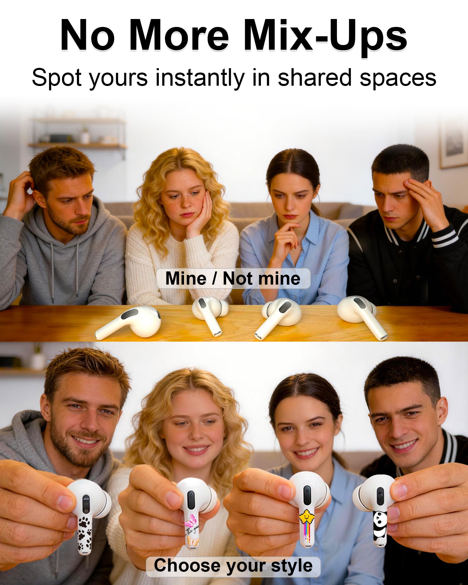 - No more mix-ups. Make your AirPods instantly recognizable at work, school, gym, or travel—stand out in a crowd and avoid grabbing the wrong pair.